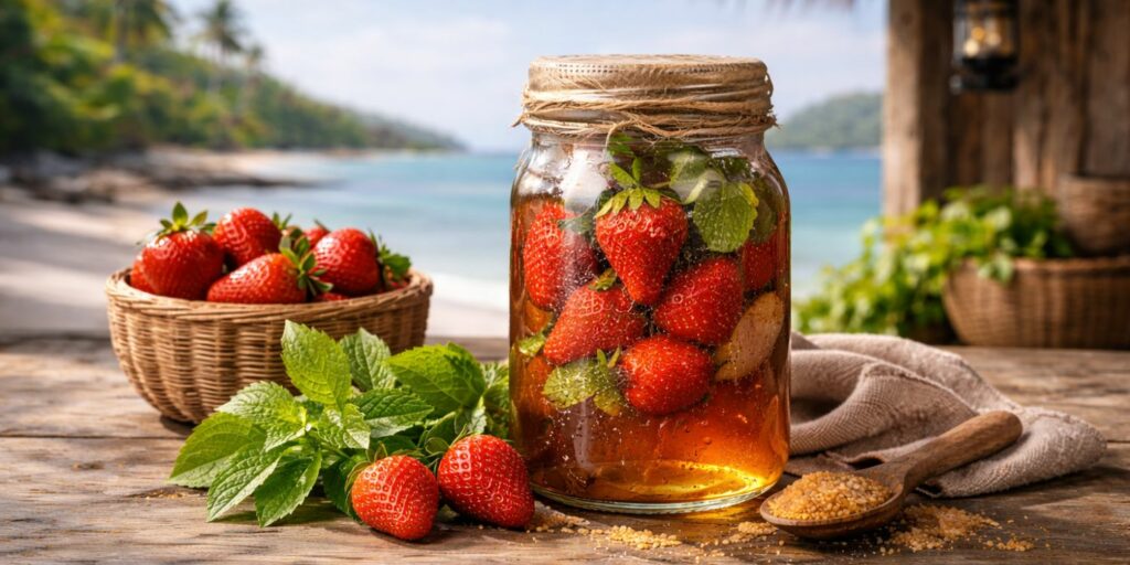 Je trouve que cette recette est idéale quand on veut faire découvrir le rhum arrangé à quelqu’un qui n’en boit pas souvent. La fraise parle à tout le monde, et la mélisse apporte ce petit twist qui change tout. Franchement, servie bien fraîche, elle peut faire son petit effet.