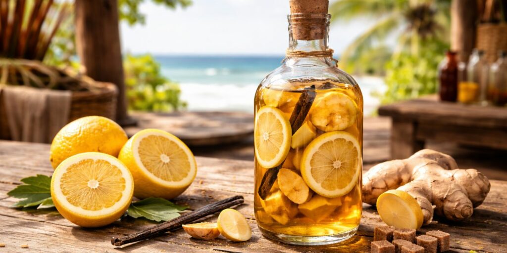 J’ai découvert un truc avec cette recette : mieux vaut retirer le gingembre avant le yuzu si vous voulez garder un bel équilibre. Sinon, on peut vite passer d’un arrangé frais à un rhum qui chauffe beaucoup trop.