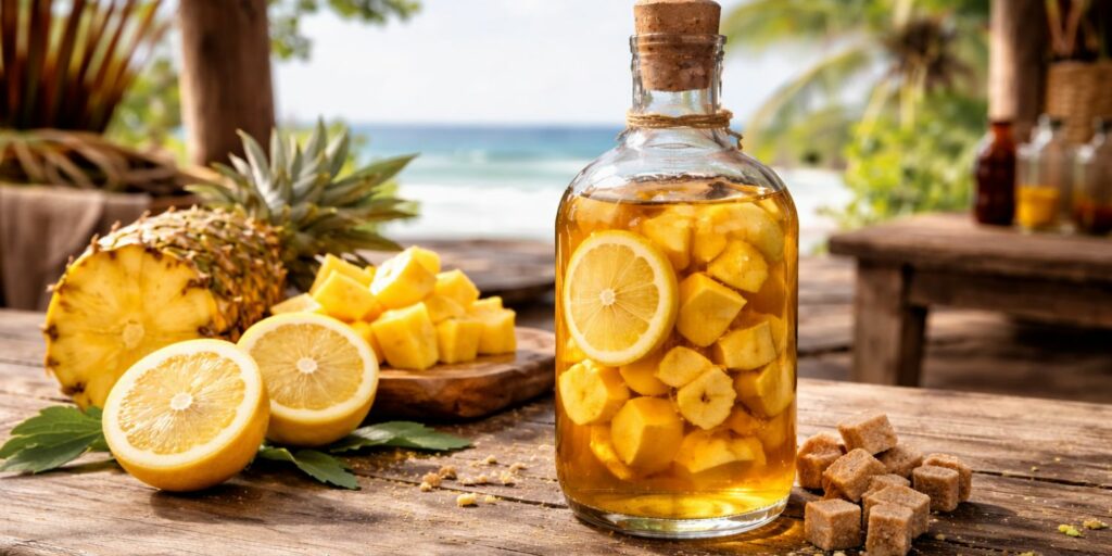 Pas besoin d’un équipement compliqué. Une bouteille ou un bocal propre, un bon couteau, une planche, éventuellement un entonnoir et un système de filtration simple suffisent largement. Le plus important, c’est surtout la propreté du matériel et la qualité de la fermeture. Pour le reste, on peut vraiment faire des choses très bien avec peu de matériel, et c’est aussi ça qui rend le rhum arrangé si plaisant à préparer chez soi.
