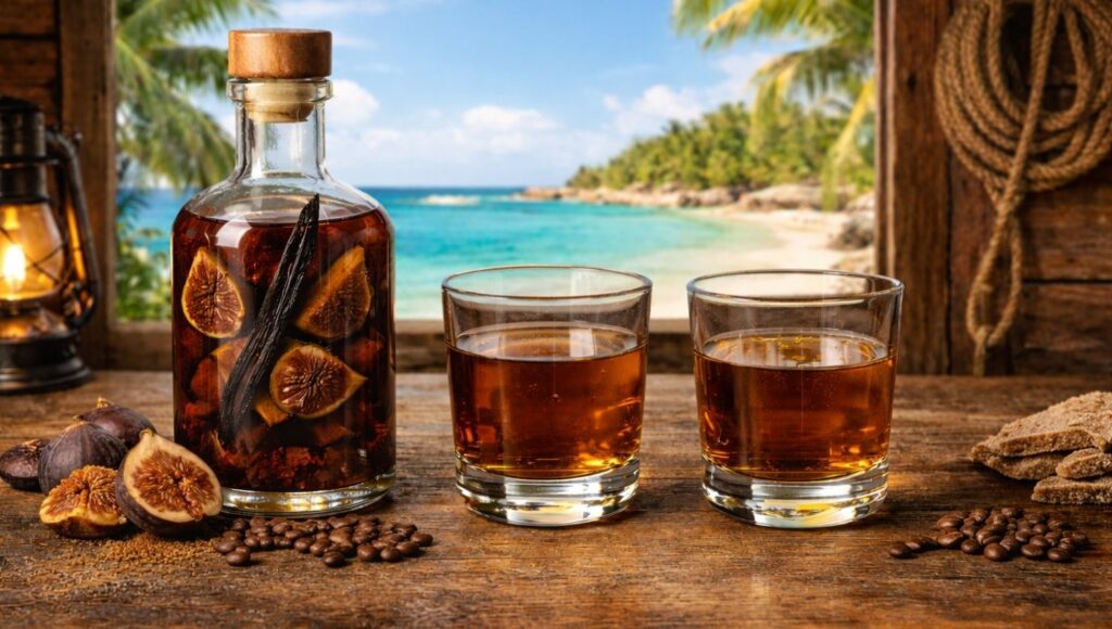 Pas besoin de te ruiner, vraiment. Un bon rhum blanc de grande surface entre 40° et 50° fonctionne très bien avec la figue fraîche. Pour la figue sèche, un rhum ambré est souvent plus intéressant, car il apporte déjà des notes boisées et vanillées. L’important, c’est d’éviter les rhums trop forts ou trop marqués, qui écraseraient le goût délicat de la figue. Le rhum doit servir de support, pas voler la vedette.