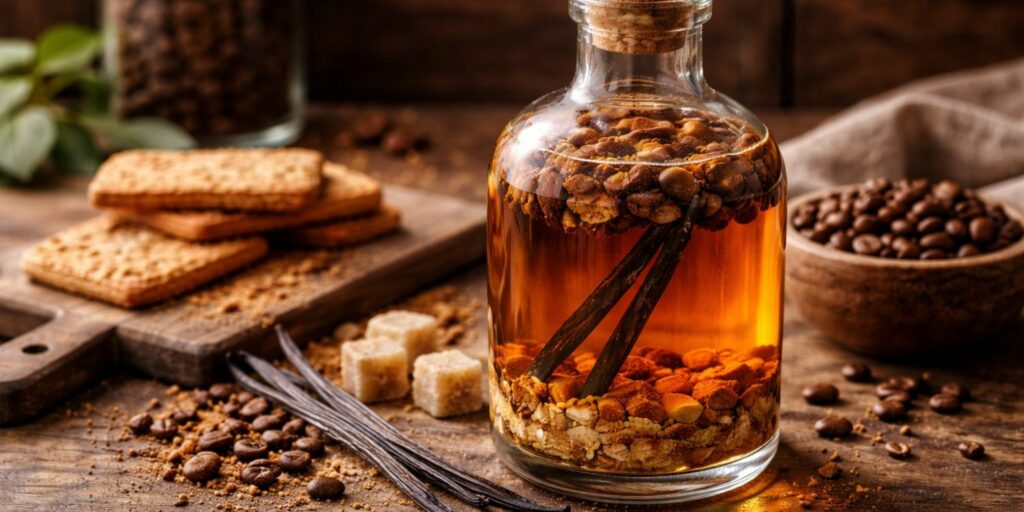 Je ne le conseille pas pour une macération classique. Le lait et la crème compliquent beaucoup la conservation et changent complètement la logique du rhum arrangé. On bascule alors plutôt sur une crème alcoolisée ou une liqueur maison, qui demande plus de précautions. Pour rester sur quelque chose de simple, stable et facile à garder, mieux vaut s’en tenir au rhum, au biscuit et aux arômes complémentaires.