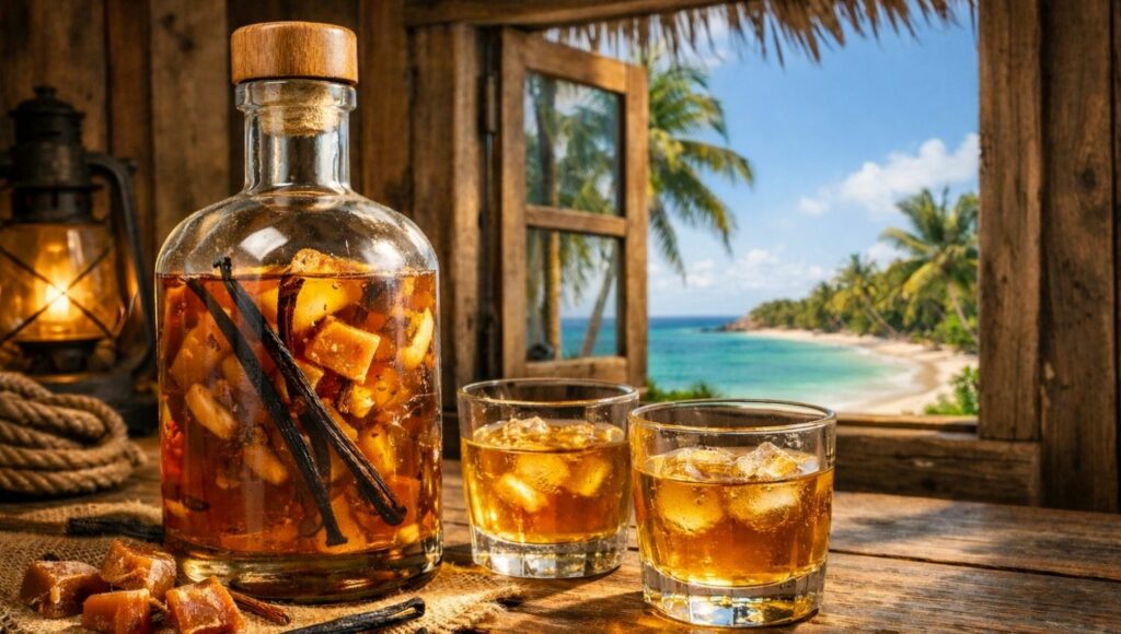 Un rhum arrangé gourmand est un rhum arrangé qui met clairement l’accent sur la douceur et la rondeur. On cherche des saveurs qui rappellent les desserts, les douceurs de l’enfance ou les fins de repas réconfortantes. On y retrouve souvent des ingrédients comme le chocolat, la vanille, le caramel, la coco ou encore le café. Ce type de rhum est particulièrement apprécié par les personnes qui trouvent le rhum classique trop fort ou trop sec. C’est aussi un excellent moyen de faire découvrir le rhum arrangé à des débutants.